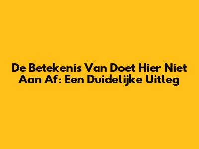 De Betekenis Van 'Doet Hier Niet Aan Af': Een Duidelijke Uitleg