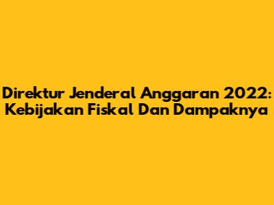 Direktur Jenderal Anggaran 2022: Kebijakan Fiskal Dan Dampaknya
