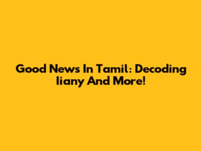 Good News In Tamil: Decoding "Iiany" And More!