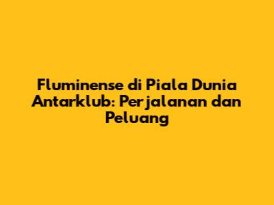 Hey guys! Siap untuk membahas perjalanan epik Fluminense di Piala Dunia Antarklub? Turnamen ini bukan hanya sekadar ajang sepak bola, tapi juga panggung bagi tim-tim terbaik dari berbagai penjuru dunia untuk membuktikan siapa yang terhebat. Fluminense, sebagai salah satu wakil dari Amerika Selatan, tentu punya ambisi besar untuk meraih gelar juara. Mari kita bedah lebih dalam mengenai persiapan, tantangan, dan peluang mereka di turnamen bergengsi ini.