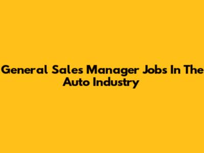 General Sales Manager Jobs In The Auto Industry