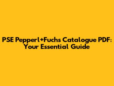 PSE Pepperl+Fuchs Catalogue PDF: Your Essential Guide