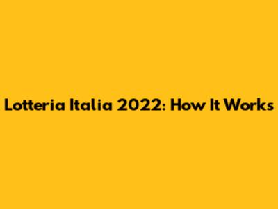 Lotteria Italia 2022: How It Works