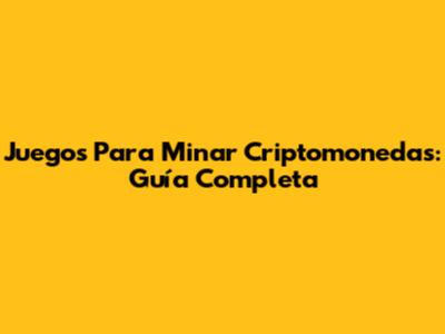 Juegos Para Minar Criptomonedas: Guía Completa