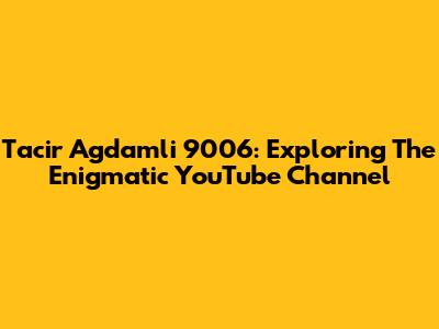 Tacir Agdamli 9006: Exploring The Enigmatic YouTube Channel