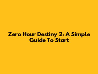 Zero Hour Destiny 2: A Simple Guide To Start