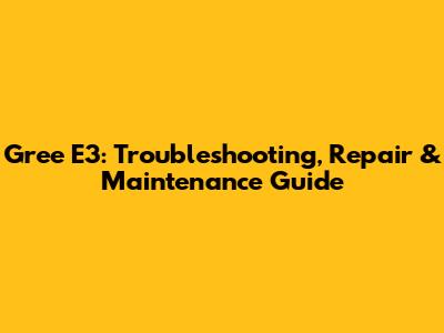 Gree E3: Troubleshooting, Repair & Maintenance Guide